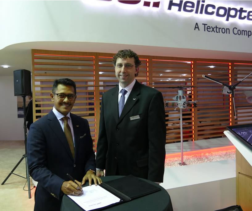 (Pictured Left to Right: Denon Prawiraatmadja, CEO, PT Whitesky Aviation and Bell Helicopter’s Executive Vice President of Customer Support and Services Glenn Isbell.)