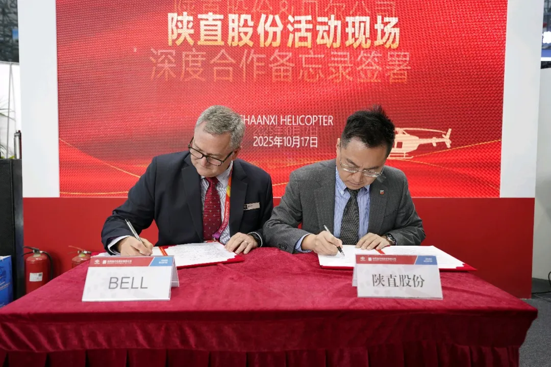 展会期间,贝尔与陕直股份签署合作备忘录,围绕贝尔轻型直升机产品,双方将联合探索市场营销协同、维护维修升级及技术培训赋能三大方向。此举将进一步整合贝尔全球技术资源与陕直股份本土服务能力,为中国客户提供更高效的全生命周期支持。